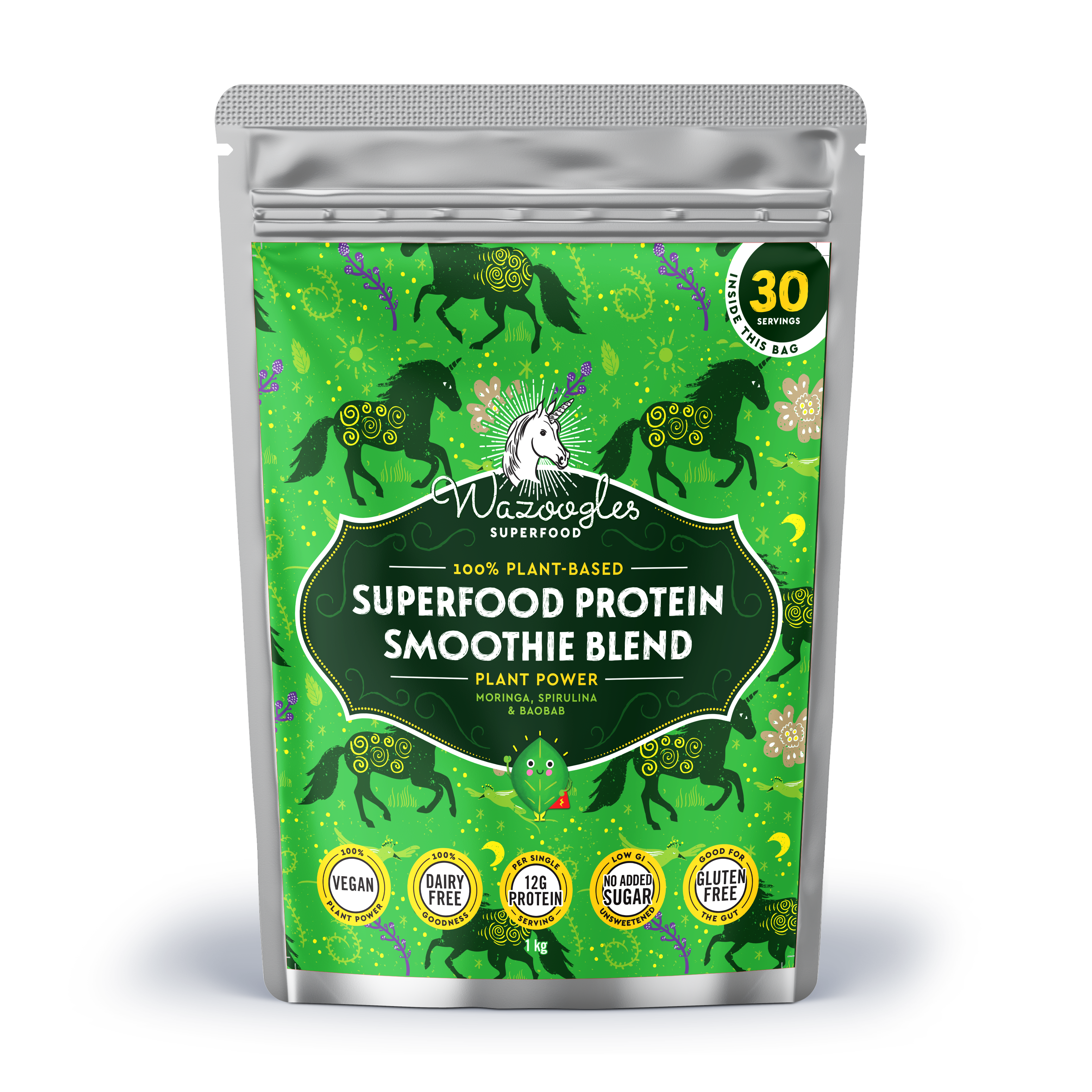 Wazoogles Superfood Protein delivers 12g plant-based protein plus five nutrient-dense superfoods in every scoop. Ethically sourced, clean and filler-free, it’s packed with antioxidants, minerals and enzymes to fuel energy, reduce cravings and support daily health.