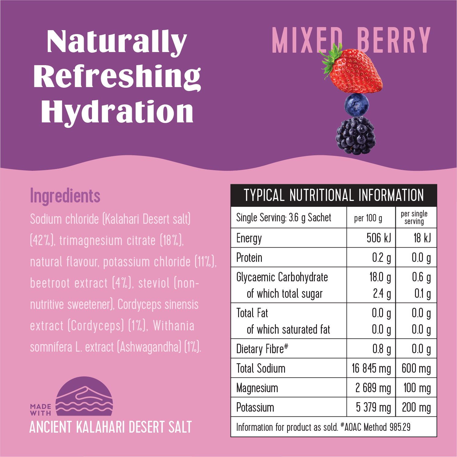 Kalahari Desert Salt is a pure, microplastic-free mineral salt, naturally rich in trace elements that help restore hydration, balance electrolytes, and support overall wellbeing.