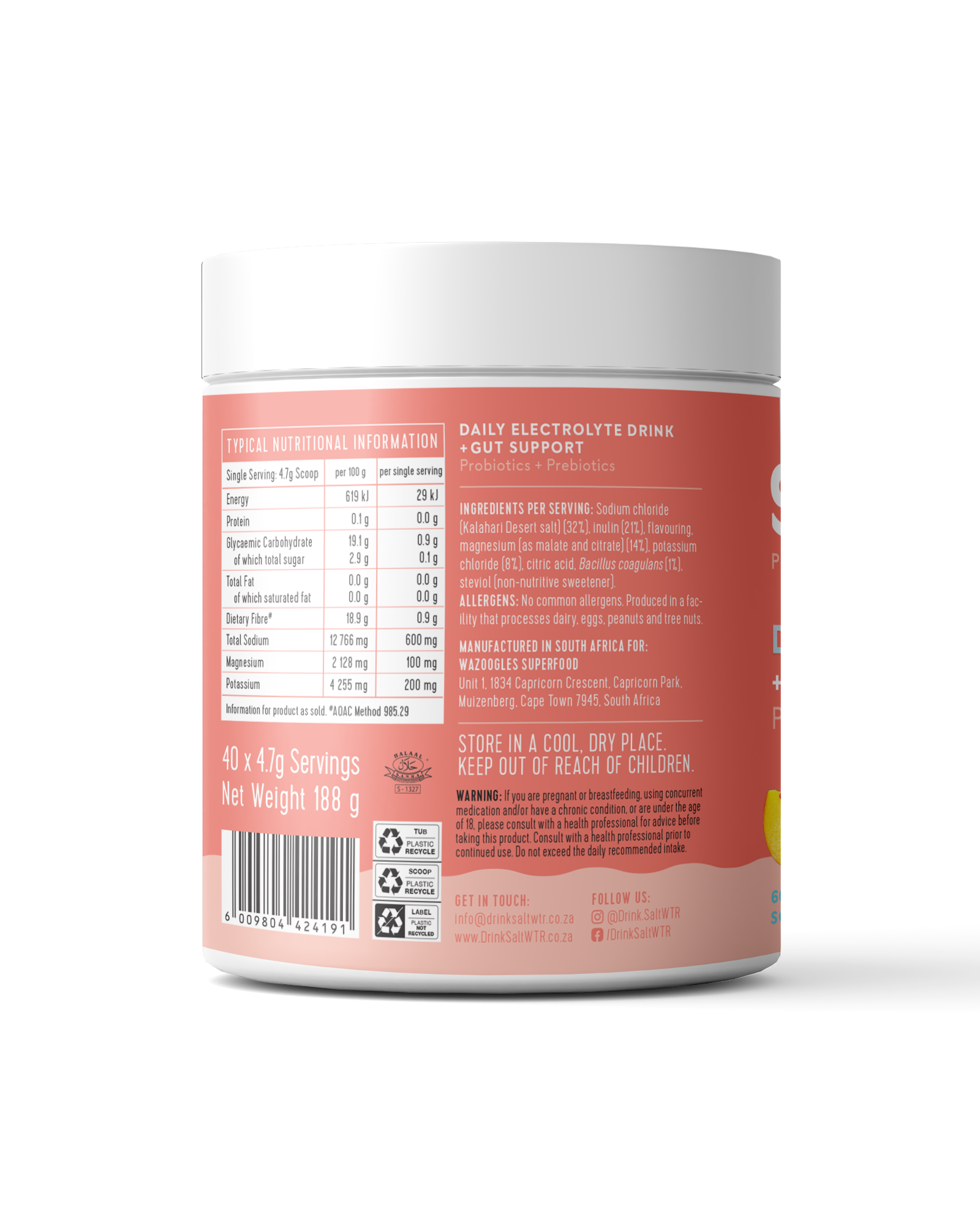 Simply mix one serving of SaltWTR in either 500ml, 750 ml or 1L, shake/stir and enjoy.