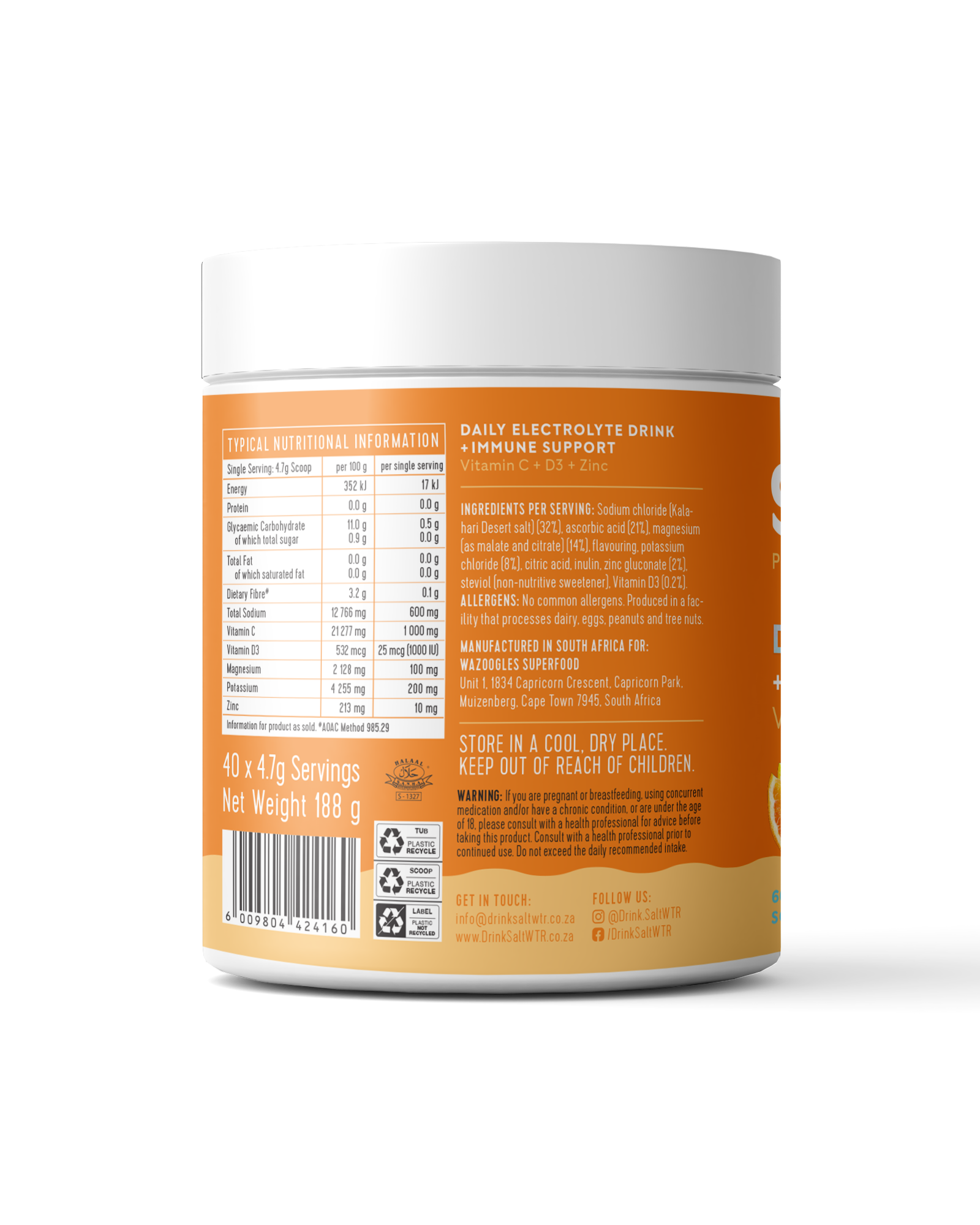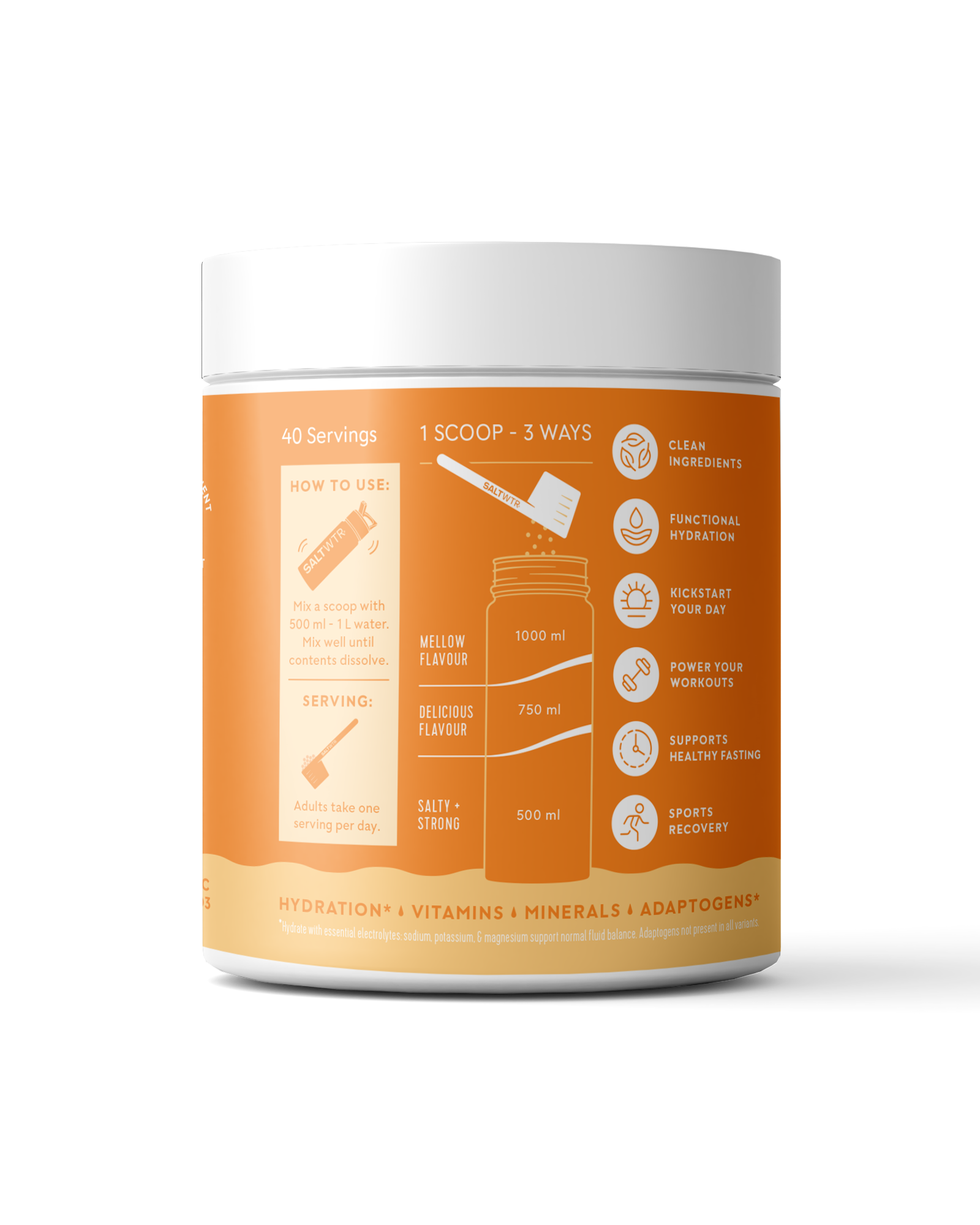 Simply mix one serving of SaltWTR in either 500ml, 750 ml or 1L, shake/stir and enjoy.