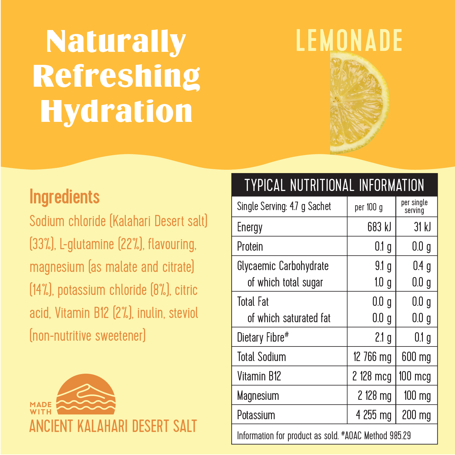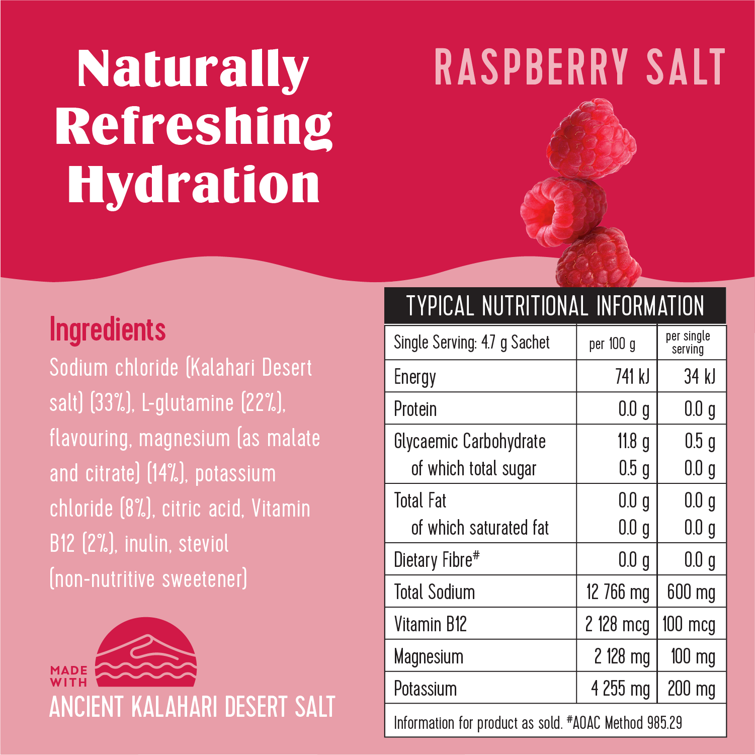 Kalahari Desert Salt is a pure, microplastic-free mineral salt, naturally rich in trace elements that help restore hydration, balance electrolytes, and support overall wellbeing.
